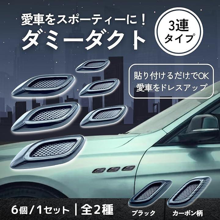 互換品 3連 ダミー ダクト 汎用 フェンダー サイド ボンネット ドア ガーニッシュ 保護 ステッカー ドレスアップ 左右セット 6個