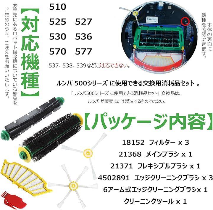 「 ルンバ500シリーズ に使用できる消耗品セット」 交換品は、 ルンバ が販売または製造するものではない。