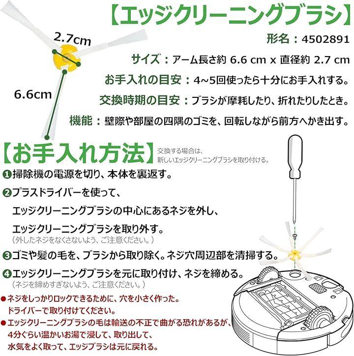 「機能」エッジクリーニングブラシは根元に通常の3倍の接着剤を使用し、先端の毛が抜けにくい、壁際や部屋の四隅のゴミを、回転しながら前方へかき出す。