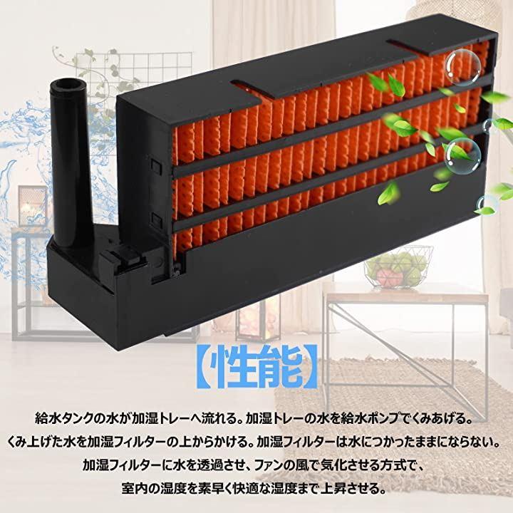 ・「加湿フィルタ」日本から原材料を採用して、優れている吸水性能で大量の水を吸い込みながら、 機械の空気循環機能により室内の隅々まで加湿します。
