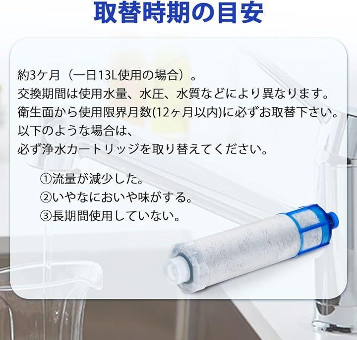 「取替時期の目安」約2ヶ月(1日13L使用) / 約3ヶ月(1日10L使用)。