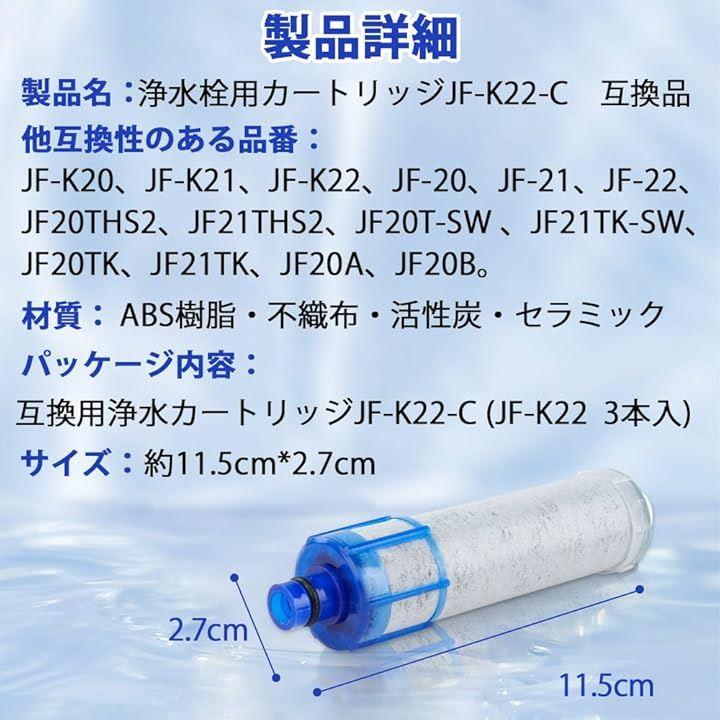 「商品仕樣・3本入」形名:JF-K22 浄水カートリッジ。