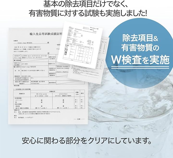 (一部パッケージには除去項目の反映、記載がございませんが、浄水能力は間違いなく試験にて7項目確認済みですのでご安心下さい。