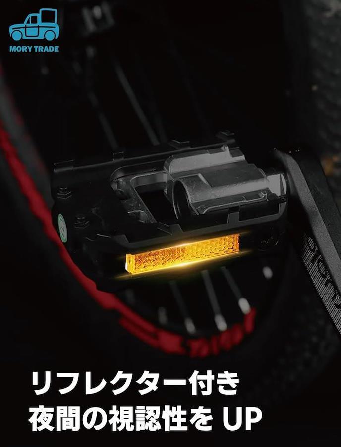 側面には両面とも、反射材、黄色のリフレクターを装着しています。