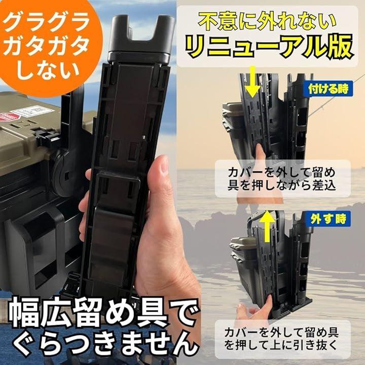 各種の釣竿やタックルボックスに対応している釣り竿のスタンド。