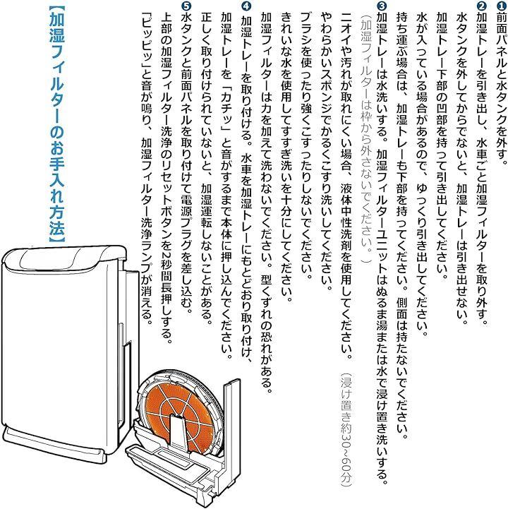 「お手入れ目安」加湿フィルターと脱臭フィルターは約1ヵ月に1度、またはニオイや汚れが気になるとき。