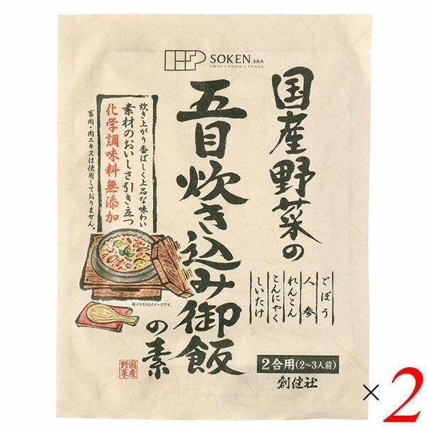 創健社国産野菜の五目炊き込み御飯の素は国内産野菜(ごぼう、人参、れんこん、しいたけ)と国内産こんにゃくを煮干、かつお、昆布の風味豊かな和風だしで仕上げた五目炊き込み御飯の素。