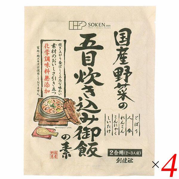 創健社国産野菜の五目炊き込み御飯の素は国内産野菜(ごぼう、人参、れんこん、しいたけ)と国内産こんにゃくを煮干、かつお、昆布の風味豊かな和風だしで仕上げた五目炊き込み御飯の素。
