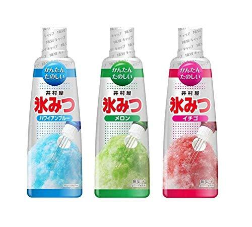 暑い夏の必需品! 1967年発売のロングセラー「井村屋 氷みつ」かき氷シロップです。 3種フレーバー「イチゴ・メロン・ハワイアンブルー」を2本づつセットにしました。 かき氷はもちろん、シャーベット・ヨーグルト・チューハイの味付けでも美味しい。 1本で約9杯分、5種5本で約45杯分。開封口はハサミ不要の保管しやすい、新キャップを採用。 いろんな味の食べ比べをお楽しみいただけます。