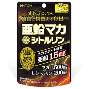 1日当たり亜鉛15mgとマカ1,500mg(生換算)に、注目成分「シトルリン」を配合した、活力サポートサプリメント。亜鉛が必要な方、男としての自信と精根ある毎日を過ごしたい方にオススメ。
