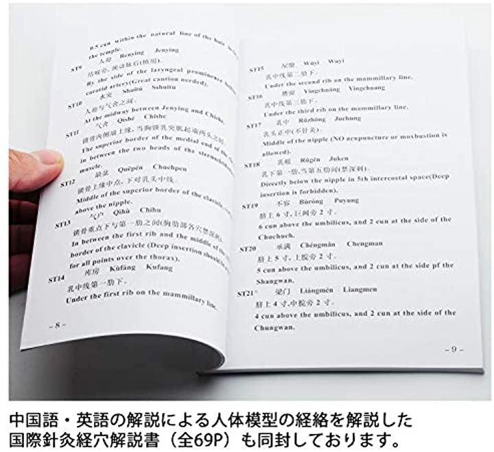 付属品は、専用箱、国際針灸経絡(中国語・英語解説)の解説書全六十九ページ。