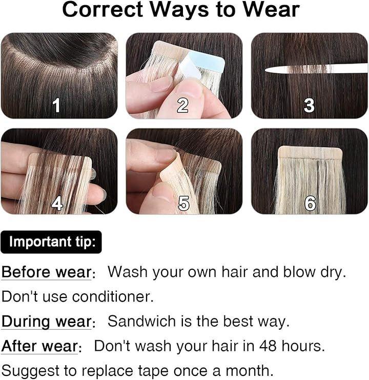 人毛 シールエクステ human hair tape in hair extensions カラー 自然ウィッグ エクステンション