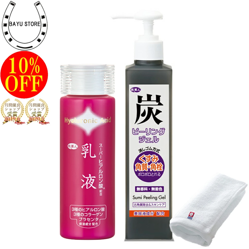 今治タオル付+10%OFF! アズマ商事 ヒアルロン酸乳液 150ml 炭ピーリングジェル セット 旅美人 炭シリーズ アズマ商事乳液 ヒアルロン酸 アズマ商事のピーリングジェル 旅美人ピーリング