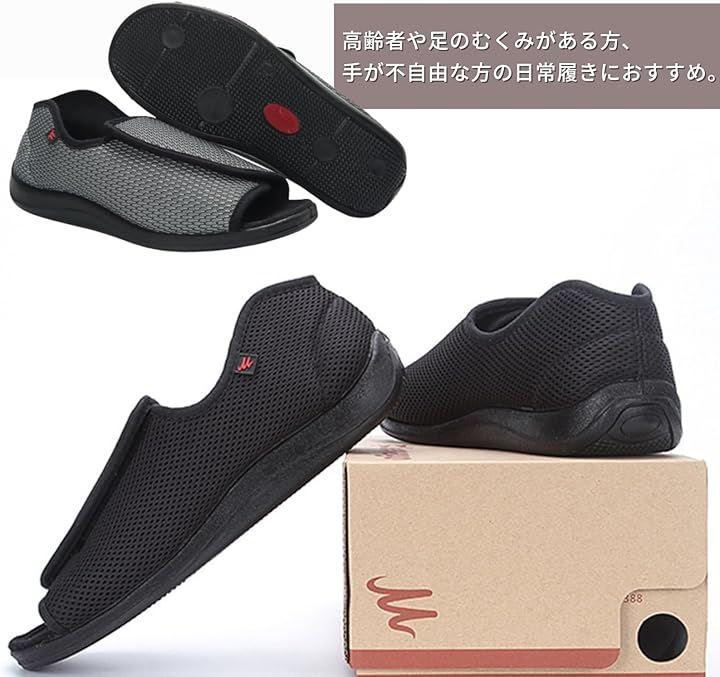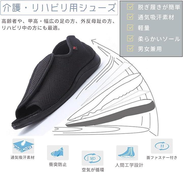 介護シューズ 介護スニーカー シニア フルオープンタイプ サンダル 高齢者用 介護靴 甲高 幅広 リハビリ 軽量 C1