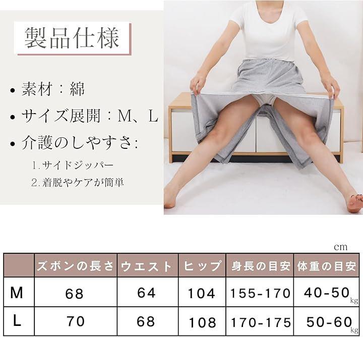 フルオープン設計で、寝たままでも簡単に着脱できる介護用ズボン。