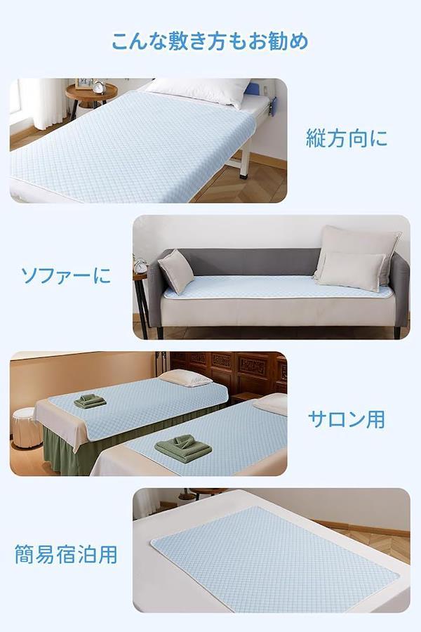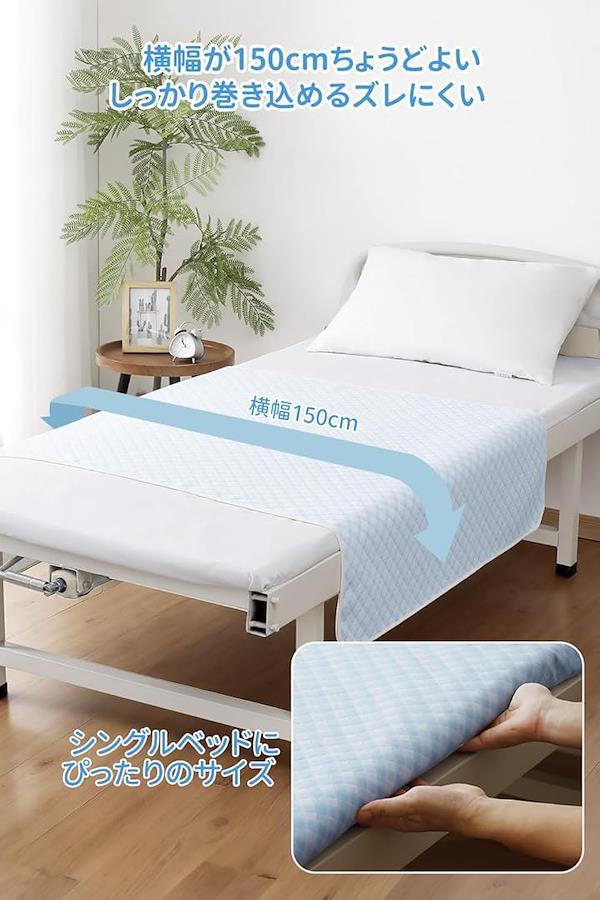 横に敷いて両端をベッドに巻き込むと、ズレにくくなります。