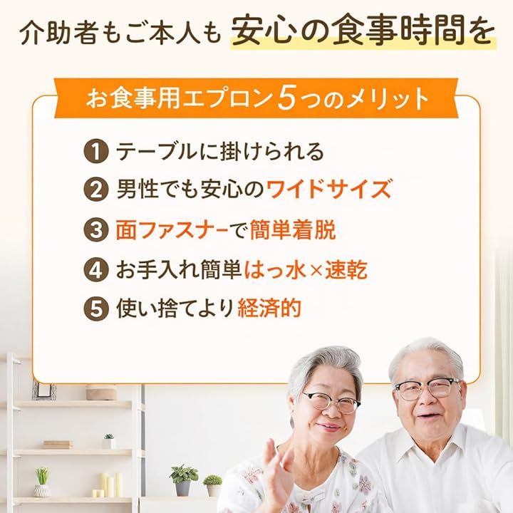 使い捨ての介護用エプロンよりも経済的で、介助する方の負担も軽減します。