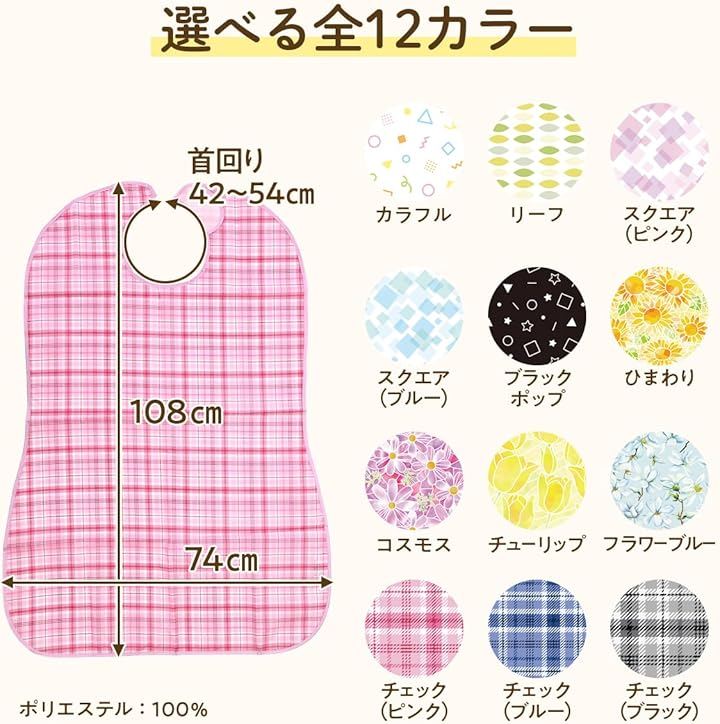 介護用エプロン お食事用エプロン 服も床も汚さない テーブルに掛けられる ワイドサイズ 高齢者 大人 シニア 介助 洗える 洗濯可 防水 かわいい 食べこぼし