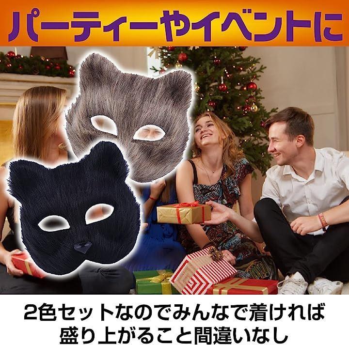 仮面舞踏会マスク ハロウィーンマスク 動物マスク 男性と女性ハーフフェイス 小道具 猫マスク 2枚セット 6タイプ