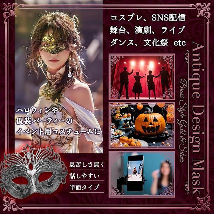 「優雅なヨーロッパ風デザインで特別なひとときを演出」 このマスカレードマスクは、ヨーロッパの華やかな文化を彷彿とさせる高級感あふれるデザイン。