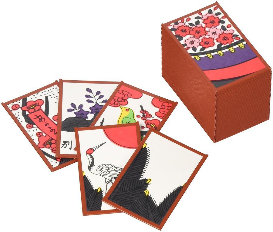 花札は、日本の四季おりおりの自然を花鳥風月でデザイン化した札です。特殊な機械製造での裏張り効果で手触りや札と札との打ち音など、心地よい感触を味わえます。 カラー:赤 パッケージサイズ(約):幅32×奥6×高65cm、素材:紙 対象年齢:10歳~ パッケージ内に含まれる商品の数: 1 プレイヤー数:3人 お客様の性別:unisex