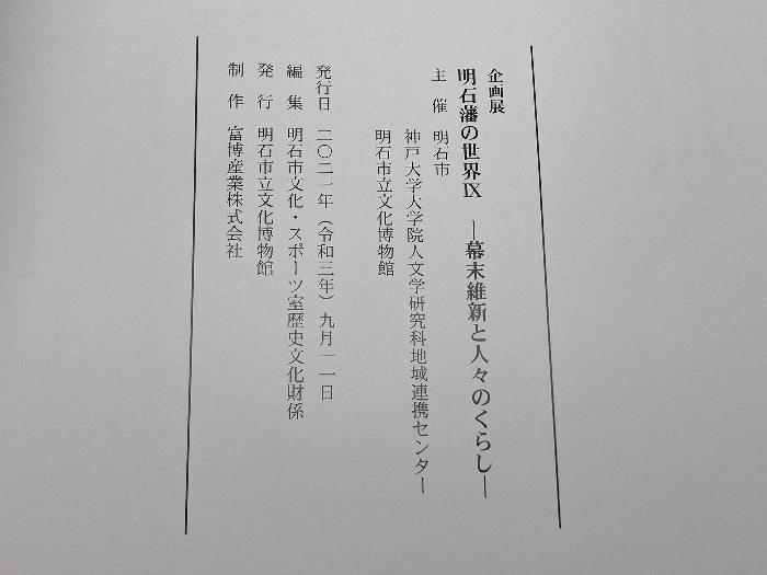 商品名:企画展 幕末維新と人々のくらし 明石藩の世界Ⅸ 明石市立文化博物館