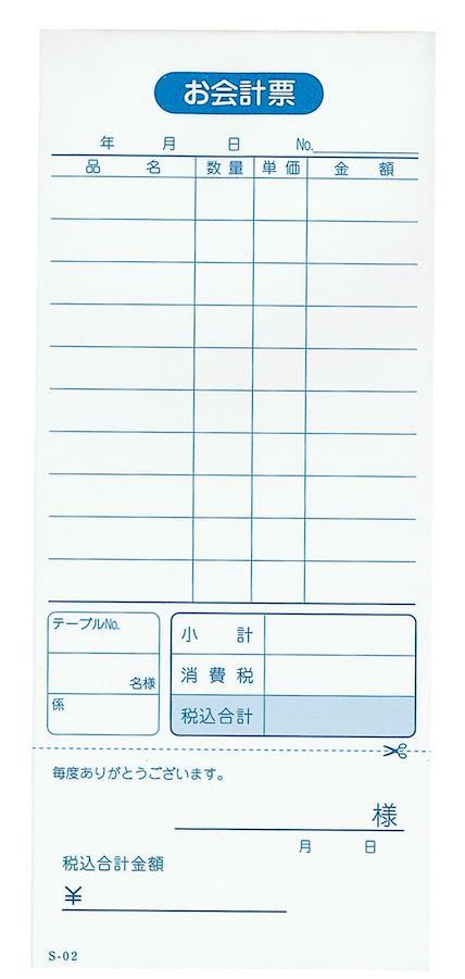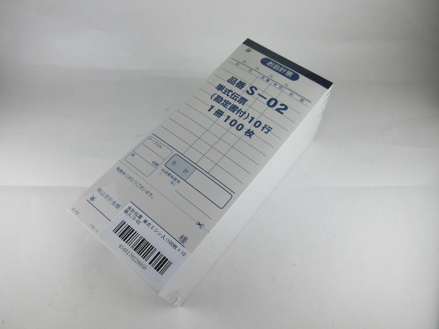 レストラン向け業務用商品。 単式伝票(勘定書付)10行。1冊100枚。10冊