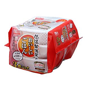 ■商品概要メーカー:アイリスオーヤマ商品名:【軽】低温製法米のおいしいごはん 国産米100%(150g×3パック入)区分:食品内容量:150g×3パック商品概要:搗きたてのお米のおいしさをそのままパックご飯にJANコード:4562403554048商品コード:123702311