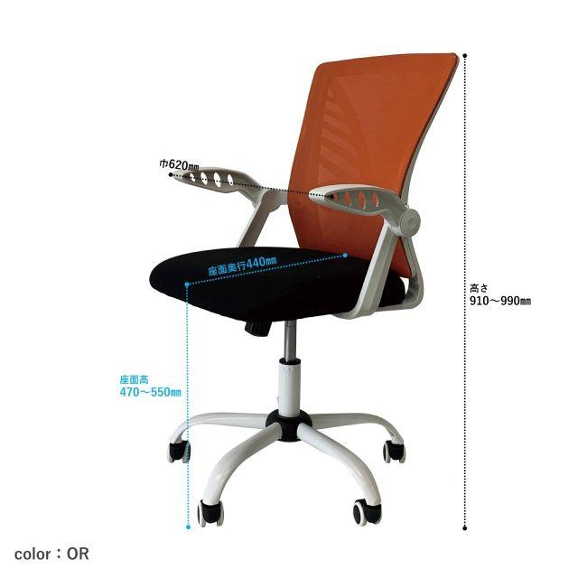 体にフィットする快適ワークチェア<メッシュチェア アンキ> 3カラー オレンジ ブルー グリーン デスクチェア ランバーサポート付 回転機能付 アームレスト付 メッシュ素材 オフィス