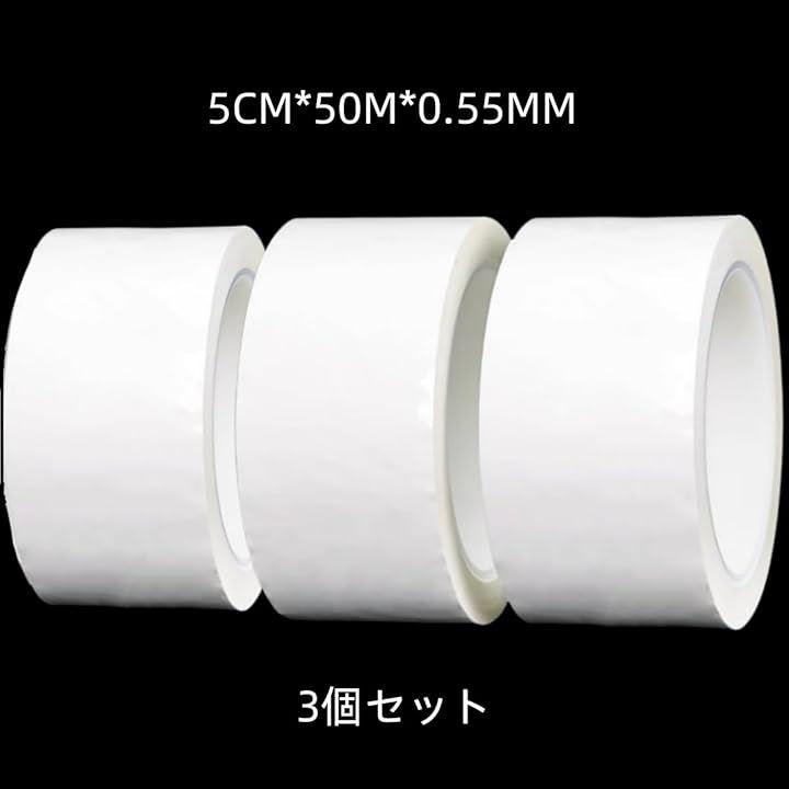 「駐車場 ラインテープ 屋外 白」この体育館 ラインテープは、長さ50m、幅50mm、厚さ0.05mmで、3巻入りのセットとなっています。