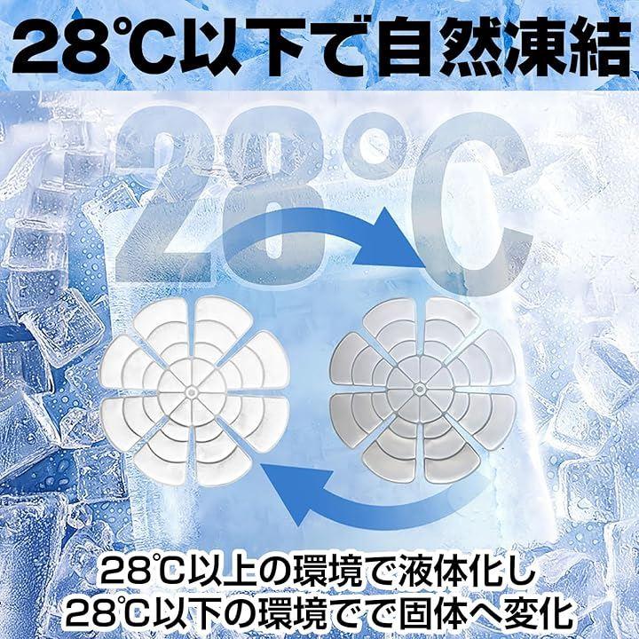 「28℃以下で自然凍結」 ヘルメット内にセットできるサイズの保冷剤。