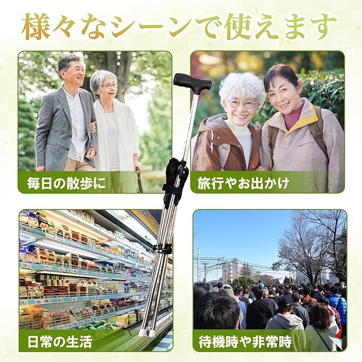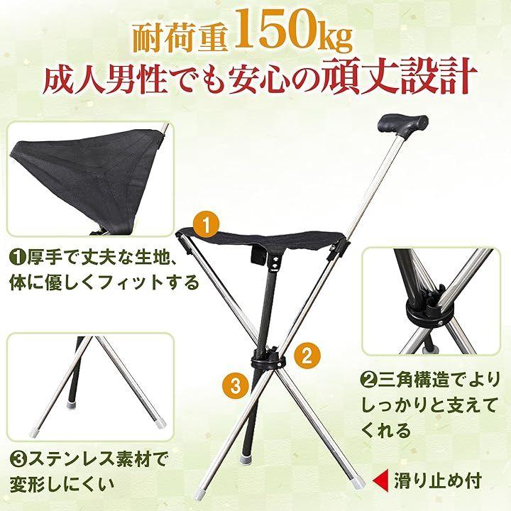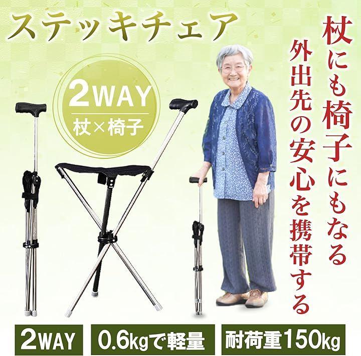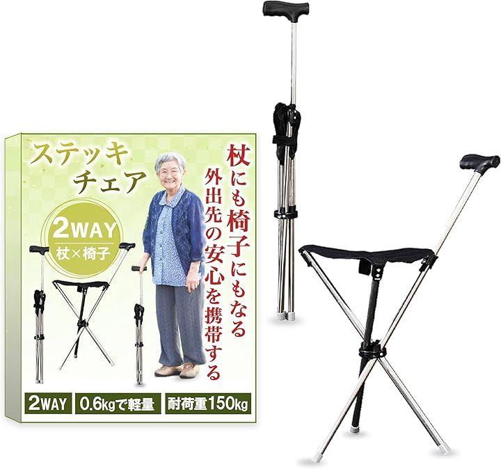 持ち歩くだけで「杖」と「椅子」の両方を兼ね備え、外出先での安心感と快適さをサポート。