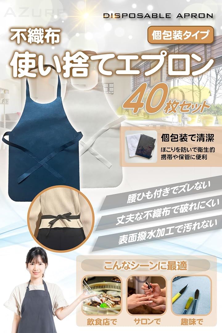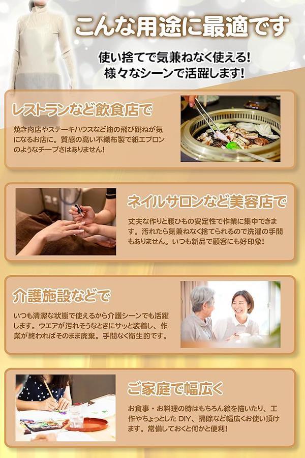 その点当商品は安心してご使用いただけます。また不織布は紙製のエプロンとは違い使用の際にカシャカシャと不快な音がしません。