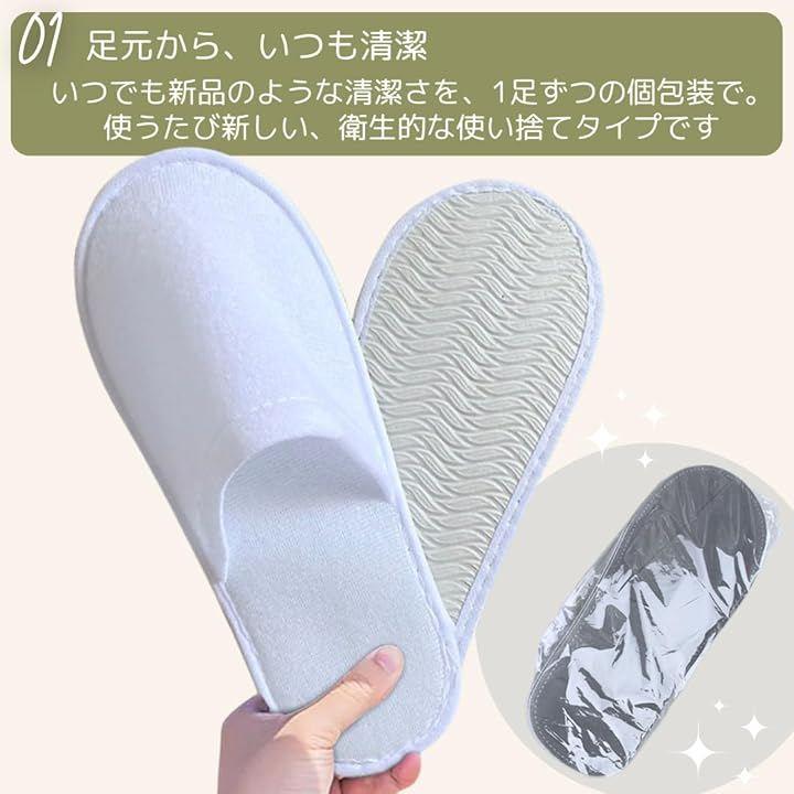 「いつでも清潔、個包装スリッパで安心を」個包装で常に清潔な使い捨てスリッパなら、衛生面も安心。