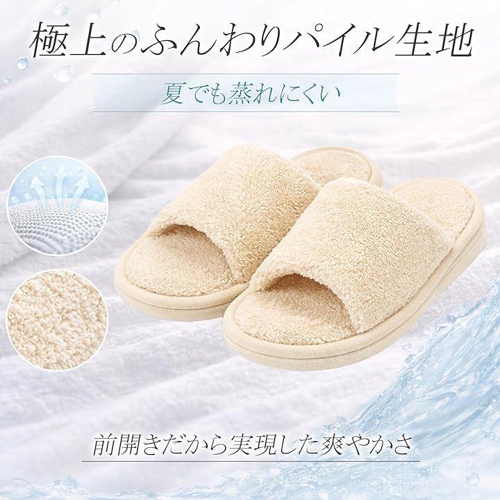 足を入れた瞬間に感じるパイル生地の優しさ、そして前開きの通気性が、快適なリラックスタイムを提供します。