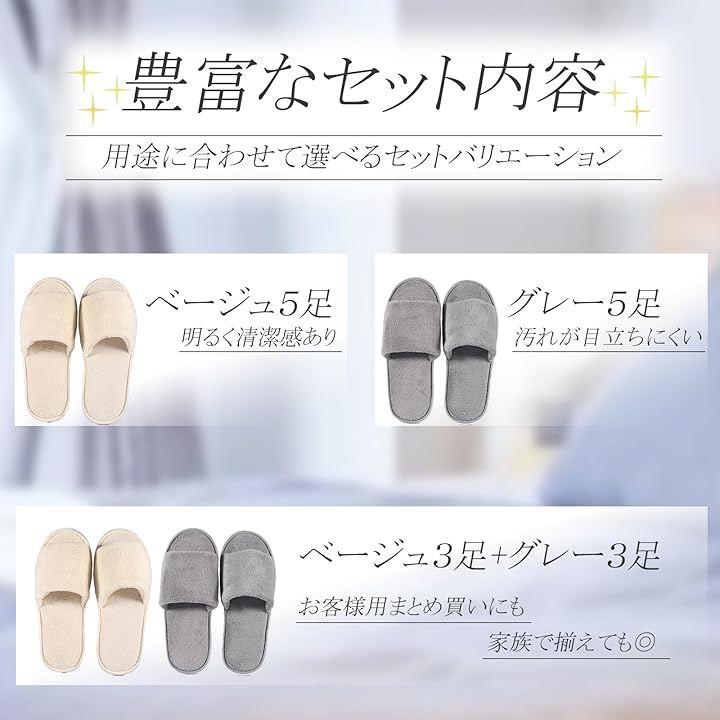 「商品バリエーション」 グレー:5足セット(落ち着いた色合いで汚れが目立ちにくい) ベージュ:5足セット(明るく清潔感があり、どんなインテリアにも馴染む) グレー&ベージュ混合:6足セット(グレー3足、ベージュ3足入り)