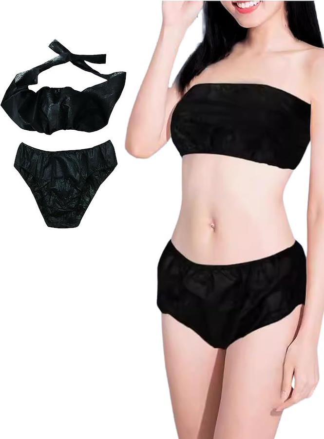 厚手で透けにくい生地の不織布なので水に強く、耐久性も抜群のペーパーブラジャーとショーツ(使い捨て紙ショーツ)フリーサイズ。