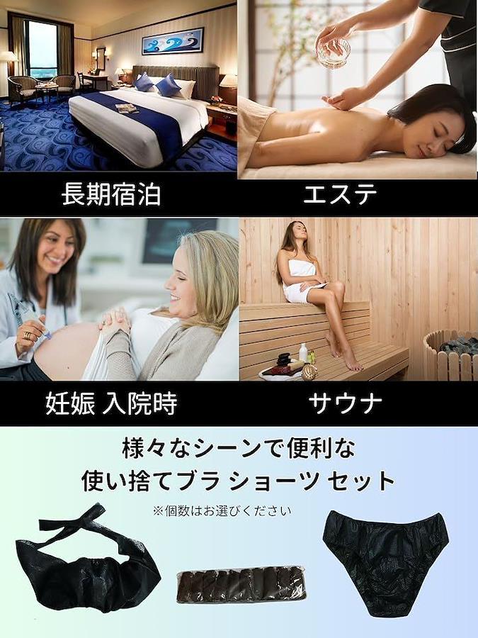 「使いきりタイプ」不織布を使用した使い捨て不織布ブラとショーツのセットです。