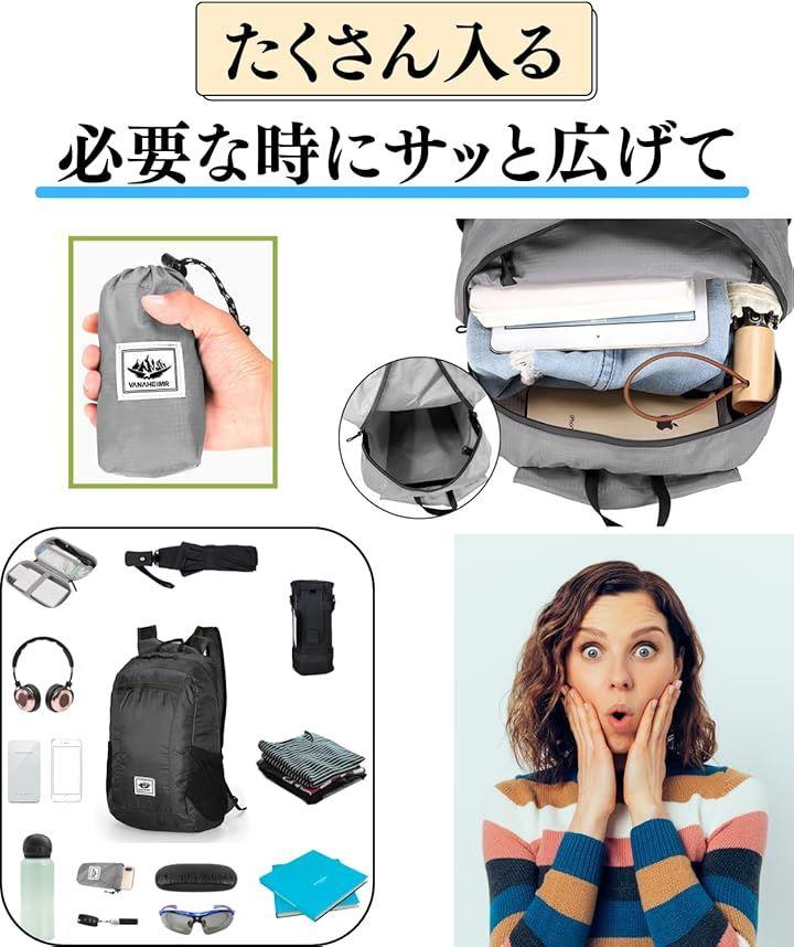 16Lの使う時だけ広げられる折りたたみリュック、不要な時はコンパクトに収納可能。