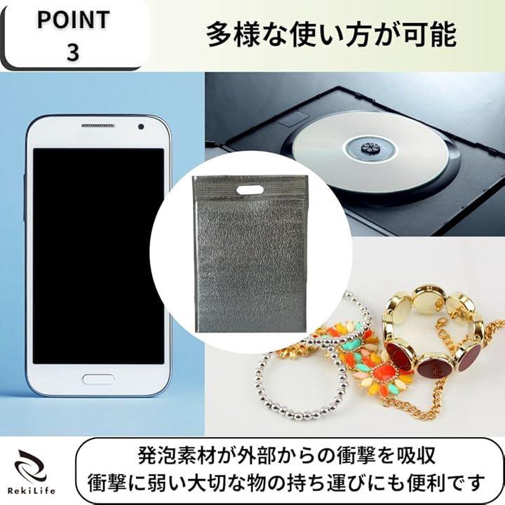 「多様な使い方が可能」内側の発泡素材が緩衝材となり外部からの衝撃を吸収することができるので、食品だけでなくスマートフォンや時計などの機器や小物を大切に管理することができるので郵送の際にも安心。