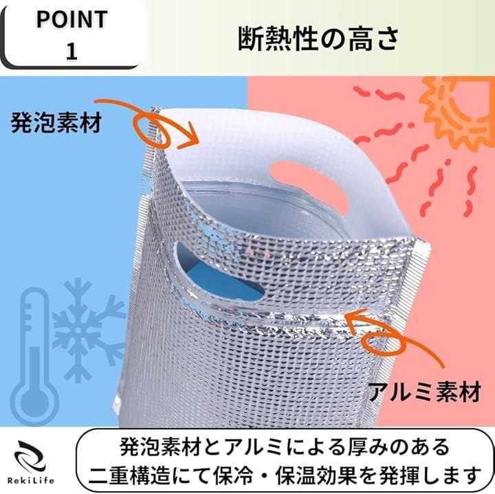 「断熱性の高さ」内側の発泡素材による断熱性、外側のアルミによる遮光性、厚みのある二重構造にて保冷・保温効果を発揮します。