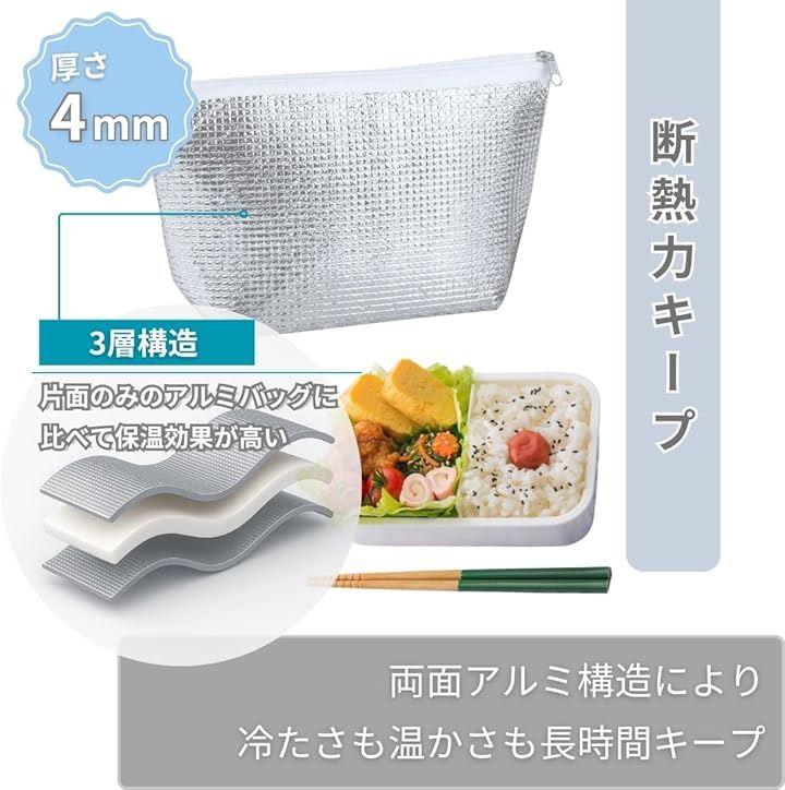 「断熱力キープ」厚さ約4mmの断熱層と両面アルミ構造により、冷たさも温かさも長時間キープ。