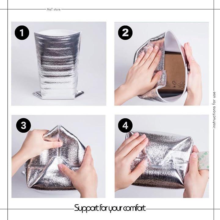 「冷たさも温かさもキープ」 アルミ素材を使用した保冷・保温袋は、食品の温度を長時間保ちやすい設計。