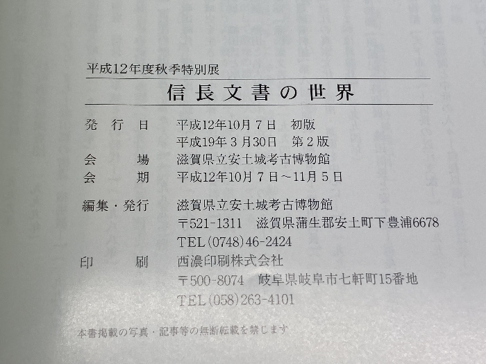 商品名:信長文書の世界 平成12年度秋季特別展 滋賀県立安土城考古博物館