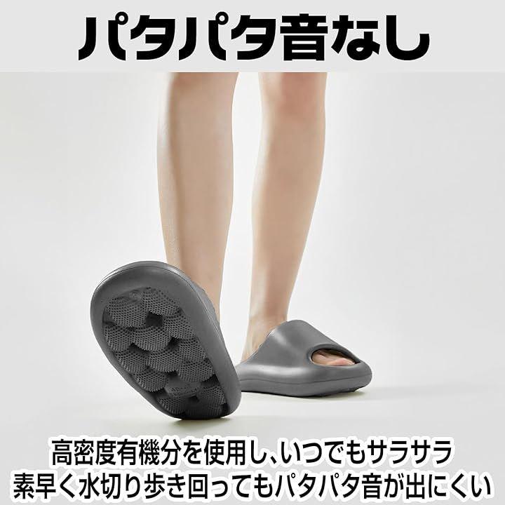「パタパタ音の軽減」 高密度有機分を使用したサンダルは、歩行時のパタパタ音を軽減します。
