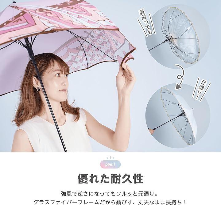 [耐風] いつも風で骨が折れてしまう...という方に ・メインの骨がすべて釣り竿のようにしなるグラスファイバー製 ・メインの骨がグラスファイバー製だからさびにくくて劣化しにくい ・通常の倍の16本も骨がある ・お花のような形の特殊な組み方をしている 「風でひっくり返ってしまっても一瞬で戻せるくらい」とっても丈夫なんです。 [使いやすさ] ・石突きの先端は滑りにくいラバー製 ・ヒラヒラしない止めベルト、自然に本体に付くよう考えた面ファスナー付 ・ニットにひっかっからない。すっきりとしたジャンプボタン [一枚張り(シームレス)] ・縫い目のない一枚張りの生地 ・まるで絵画のようなイラストを全面に表現 ・縫い目からの雨漏りリスクを軽減 通常の婦人傘では小さく感じるけど紳士傘を持つのはちょっと違う...という方に ・16本の骨があることで、生地面積が広くなるから同じ大きさでも差したときだけちょっと大きめ ・メインの骨がグラスファイバー製だから鉄製の骨よりもちょっと軽量 ・紳士傘と違って華やかなデザインが豊富 [スペック] *素 材 生地:ポリエステル100%/骨:グラスファイバー *サイズ 親骨の長さ:60cm *全長総丈の長さ:84cm *重さ重さ:480g 「ご注意」 *撥水性の高い柔らかい生地の特性上、通常の傘よりシワが見受けられる場合がございます。