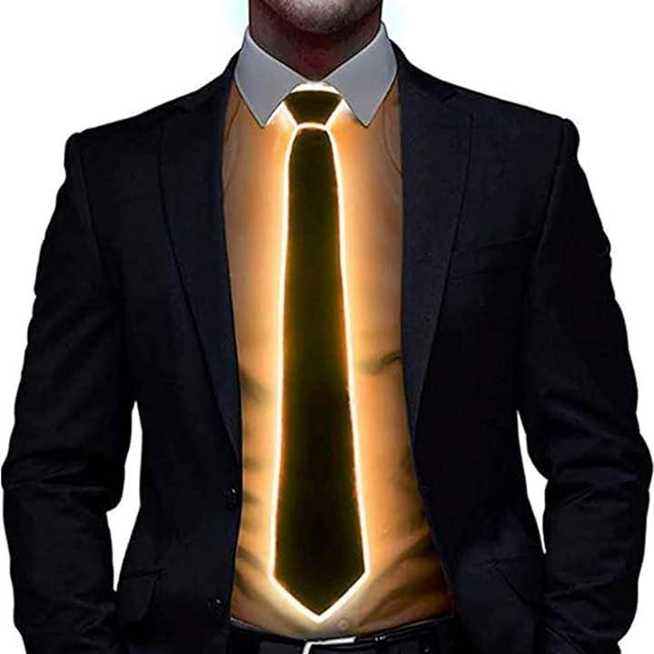 この光るネクタイは、LEDライトが内蔵されており、暗闇で鮮やかに光ります。