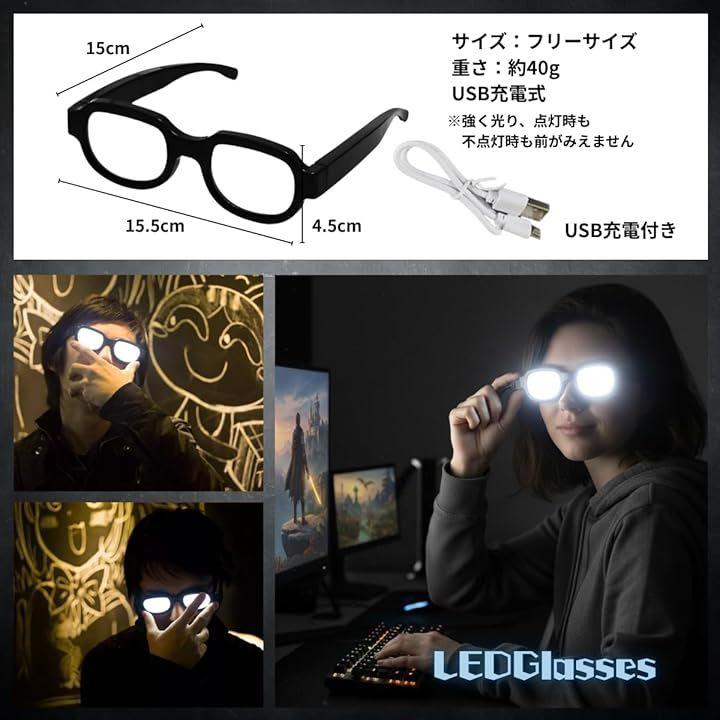 「光とインパクト」スイッチひとつで強く発光し、楽しめる光るメガネです。