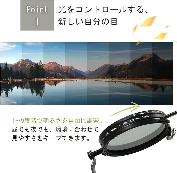 革新的な1~9段階の調整機能を備えたこの偏光サングラスは、環境に合わせて明るさを自由に変えられる次世代のアイウェアです。