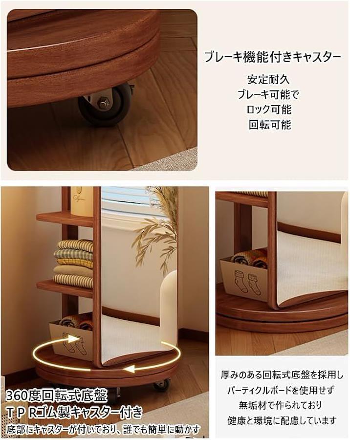 「機能」衣装を全身鏡の前で整えることができ、スタイリングやアクセサリーのチェックがしやすくなります。
